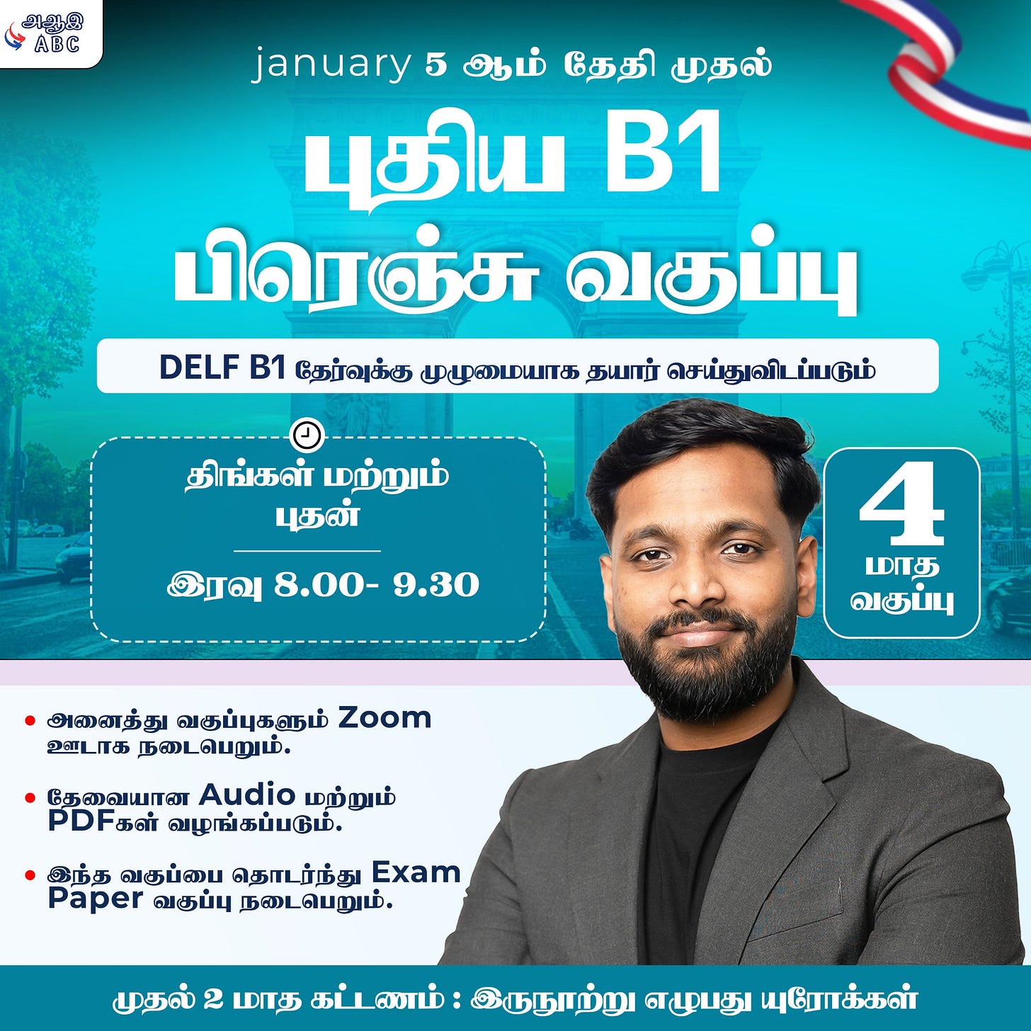🇫🇷பிரெஞ்சு வகுப்புகள் ஆரம்பம் புது வருடத்தை எப்படி சரியாக தொடங்கவேண்டும் ? déc. 30, 20254Partagerஎல்லோருக்கும் வணக்கம், நான் தீபக், 2026 ஆம் ஆண்டு பிரெஞ்சு மொழியில் முன்னேற விரும்புகிறீர்களா ? 🇫🇷 புதிய A2, B1 வகுப்புகள் தை மாதம் ஆரம்பம்குறைந்த இடங்களே மீதமுள்ளது. இப்போதே பதிவு செய்யுங்கள் !☎️ +33 652338357நன்றி 🙏
